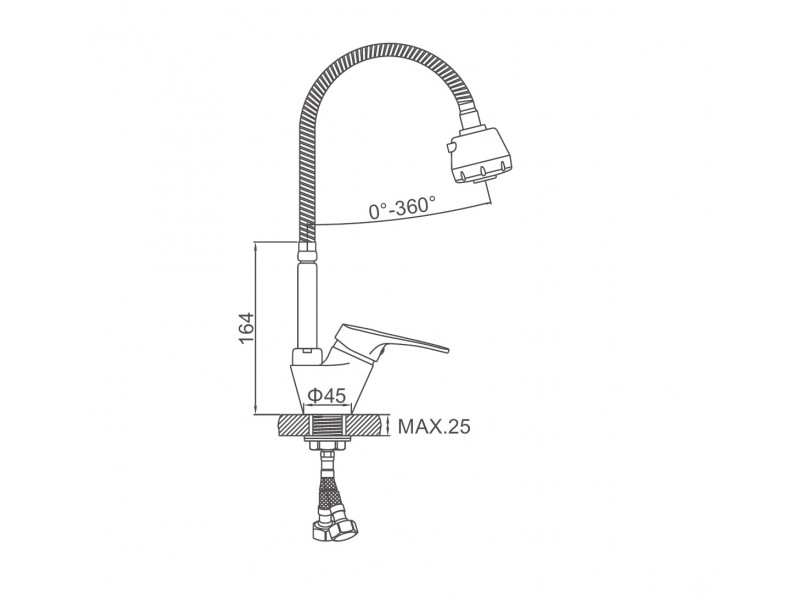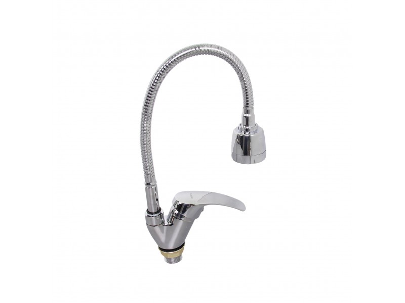 Смеситель для кухонной мойки с гибким полужестким изливом и лейкой-аэратором с двумя режимами.