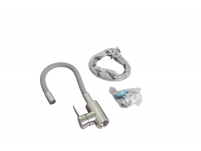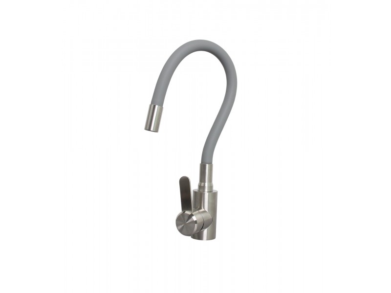 Смеситель для кухонной мойки с гибким полужестким силиконовым изливом.