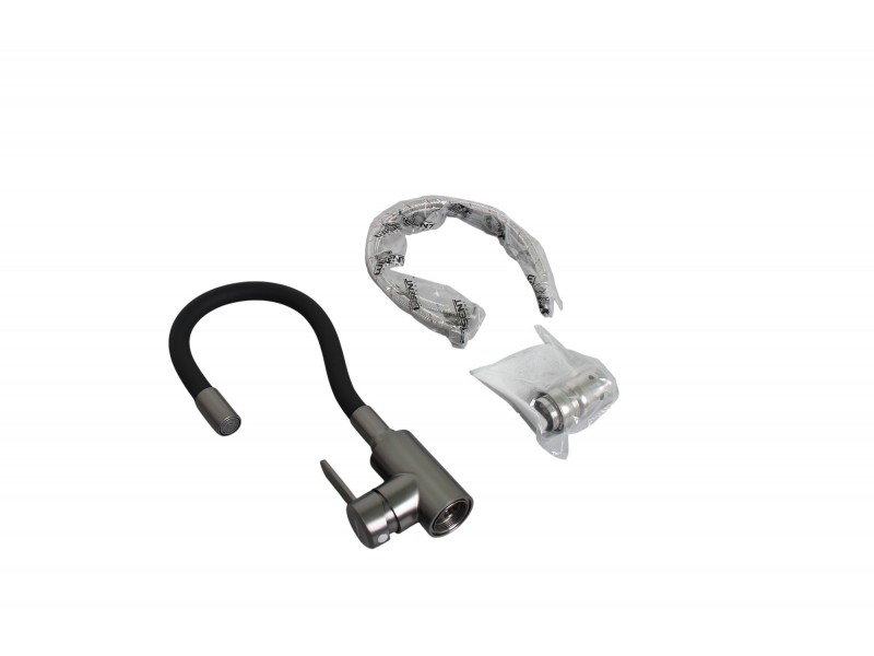 Смеситель для кухонной мойки с гибким полужестким силиконовым изливом.