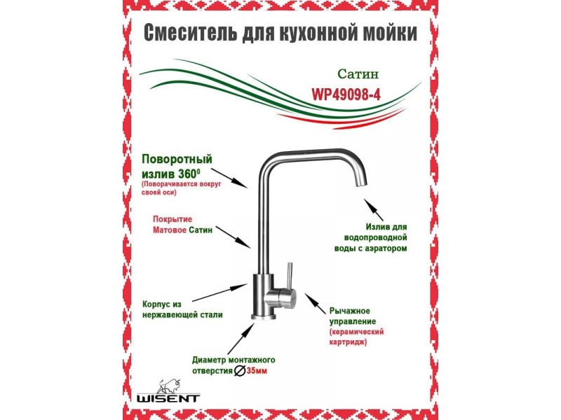 W4998-4 Кухонный из НЕРЖАВЕЙКИ WisentВ нашей компании можно приобрести товар для оптовой торговли. Розничные и мелкооптовые клиенты обслуживаются в сети дилеров ООО Аш Два О или в магазинах торговых представителей Сантехника WISENT созда.. |