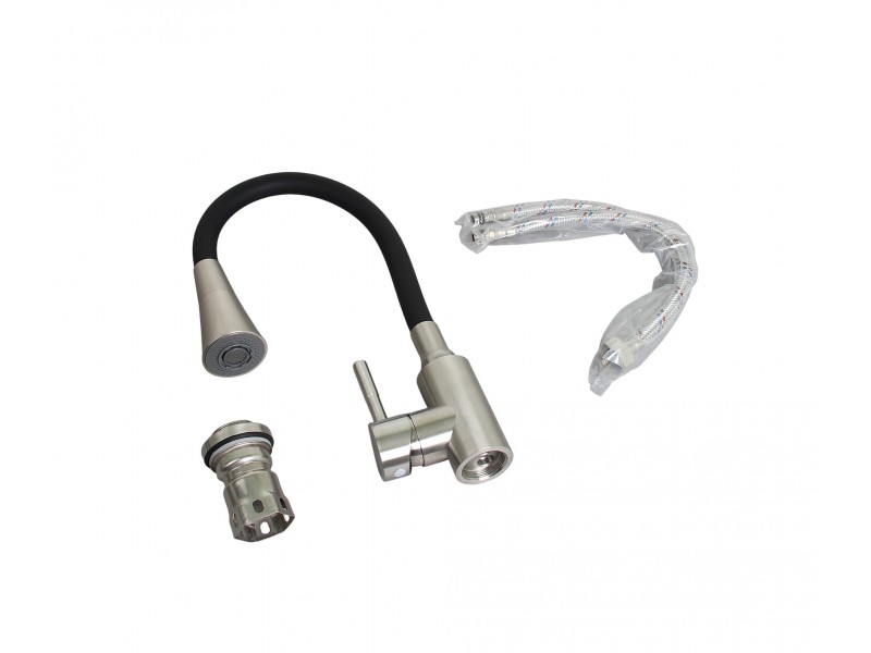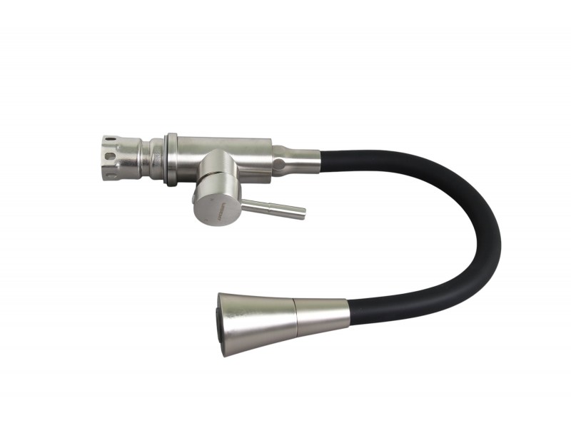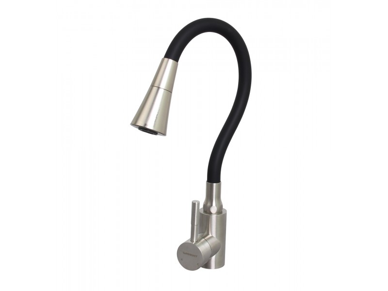 Смеситель для кухонной мойки с гибким полужестким силиконовым изливом и аэратором с двумя режимами.