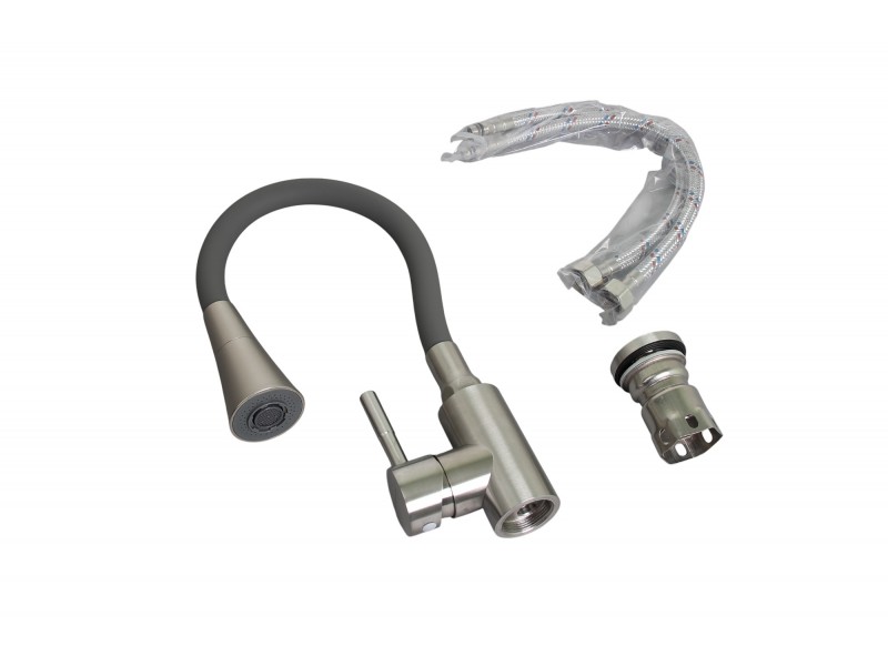 Смеситель для кухонной мойки с гибким полужестким силиконовым изливом и аэратором с двумя режимами.
