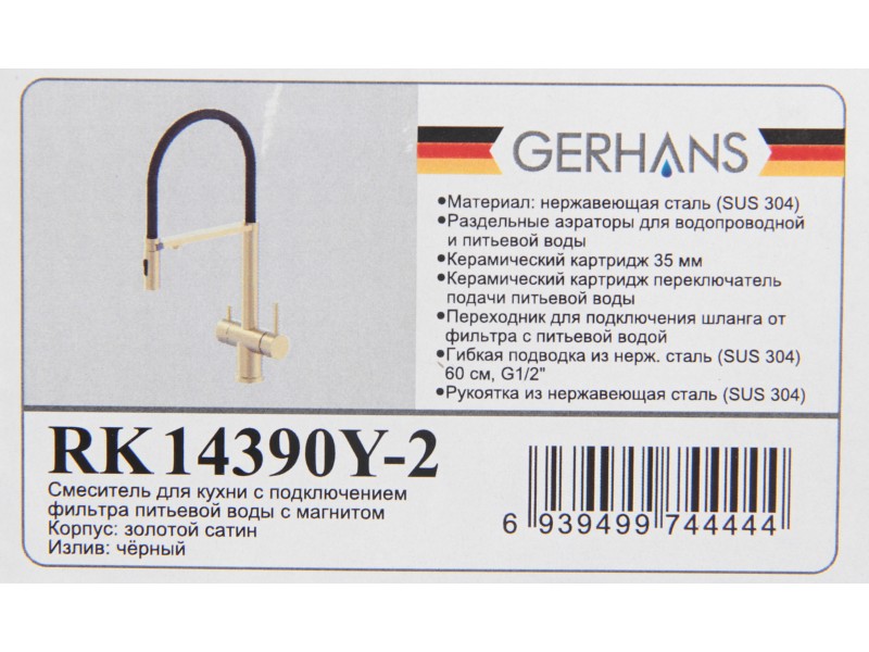 Смеситель с питьевым краном GERHANS K14390Y-2;