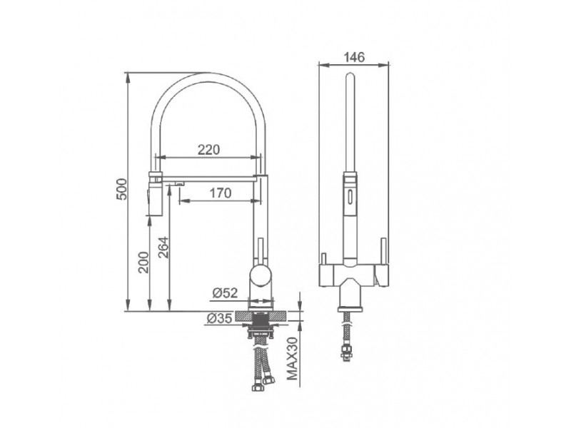 Длинный сгон под крепежную гайку (возможен монтаж на столешницу).