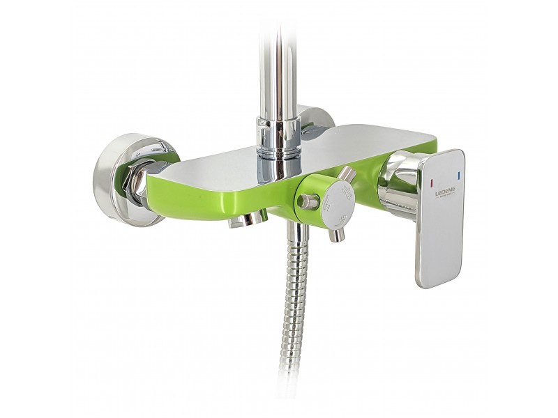 Зеленое покрытия в комбинации с хромом для ярких стильных душевых.