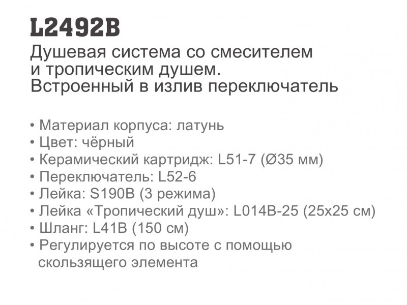 Душевая система со смесителем и тропическим душем LEDEME L2492B.