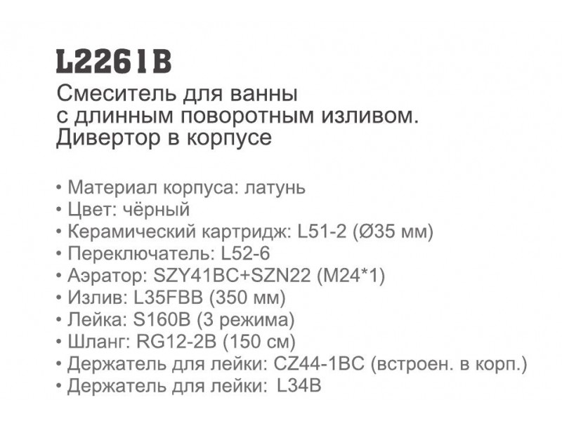 L2280B Смеситель для ванной,длин. излив,LEDEME, черныйСерия H80B латунь Ø35 Новинки В нашей компании можно приобрести товар для оптовой торговли. Розничные и мелкооптовые клиенты обслуживаются в сети дилеров ООО Аш Два О .. |