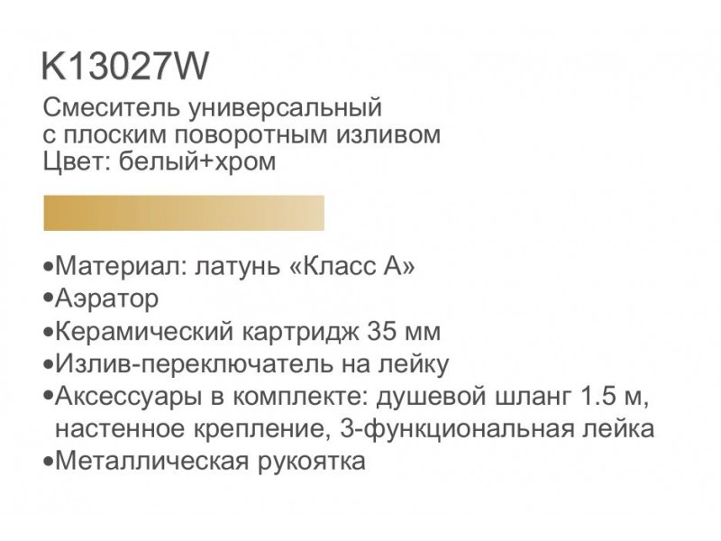 Комплектация: смеситель, шланг, лейка, держатель, крепление;
