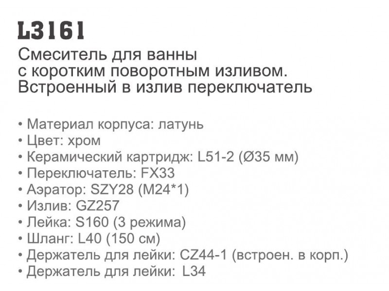 L3181 Смеситель для ванной,короткий излив,LEDEMEСерия H81 латунь Новинки Смеситель для ванной однорычажный Ledeme L3181;Модель: L3181 Ledeme ;Дата выхода на рынок: 10.2023;Материал корпуса: .. |