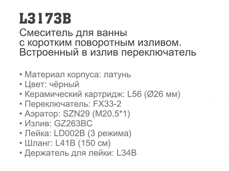 Смеситель для ванной однорычажный с коротким изливом Ledeme L3173B;