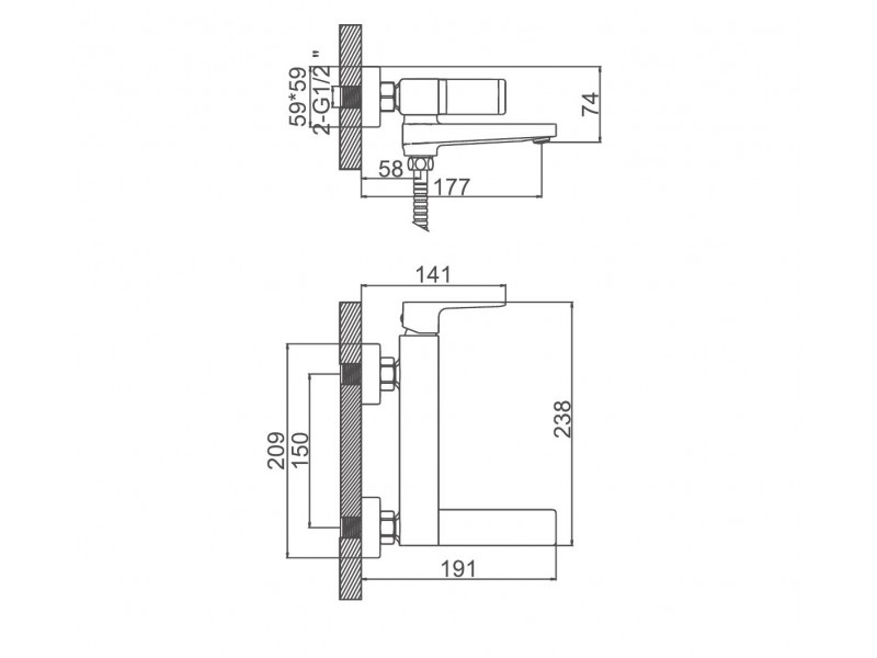 Комплектация: смеситель, шланг, лейка (кнопка), держатель, крепление;