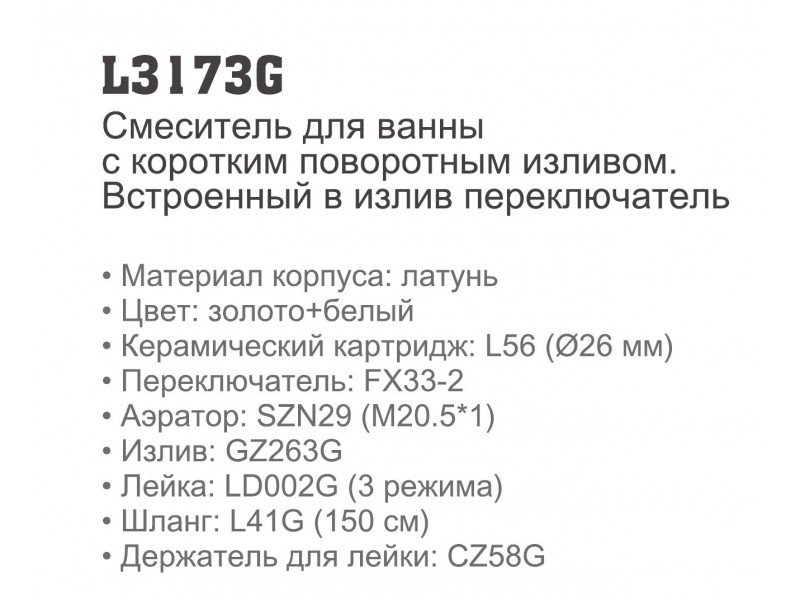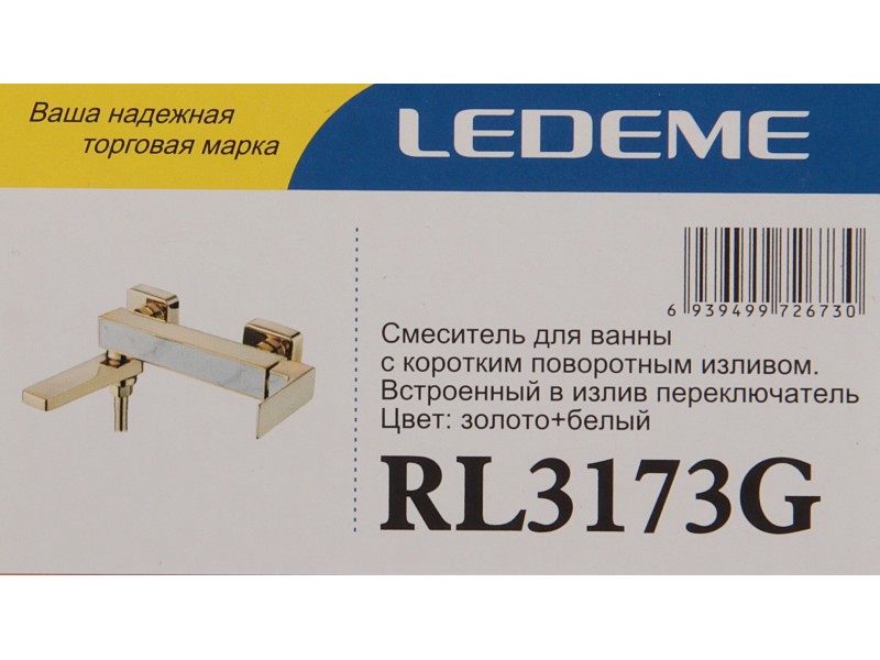Смеситель для ванной однорычажный с коротким изливом Ledeme L3173G;