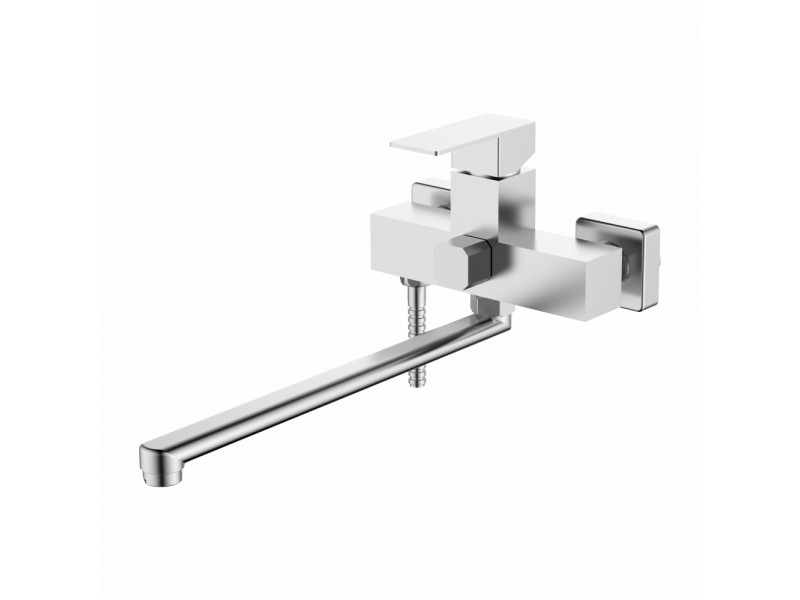 Практичный Смеситель для ванной однорычажный в цвете хром и плавным ходом ручки.