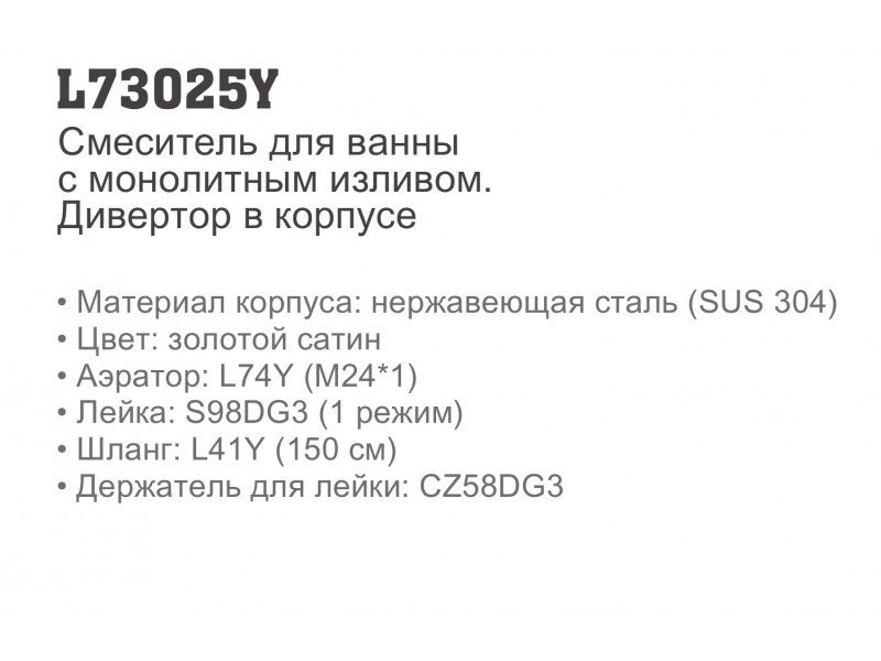 Теги: Смеситель для ванной однорычажный, Ledeme H725Y, нержавейка, короткий излив, золотой сатин