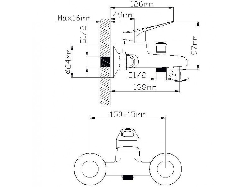 Смеситель для ванны с коротким изливом WISENT WP30213