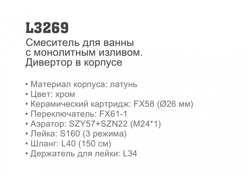 L2269 Смеситель для ванной,длин. излив, Ф25,LEDEMEВ нашей компании можно приобрести товар для оптовой торговли. Розничные и мелкооптовые клиенты обслуживаются в сети дилеров ООО Аш Два О или в магазинах торговых представителей Смеситель латунный для .. |