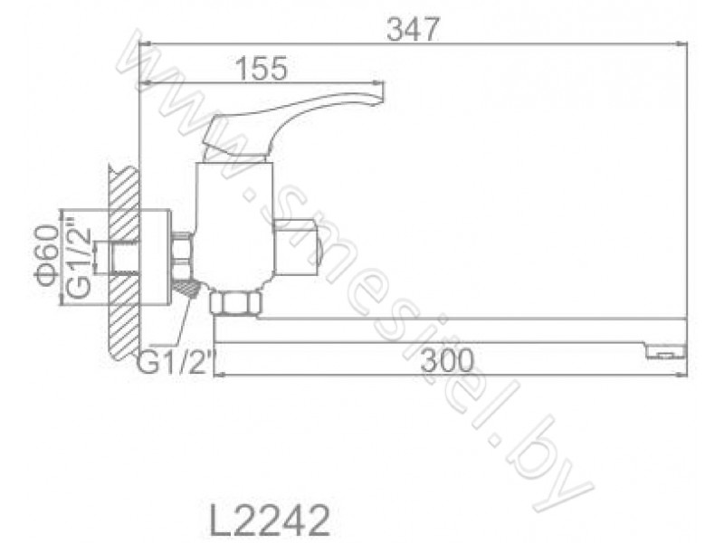 Теги: h42, для ванны, для ванный и душа, ванник, нос 30см, хром