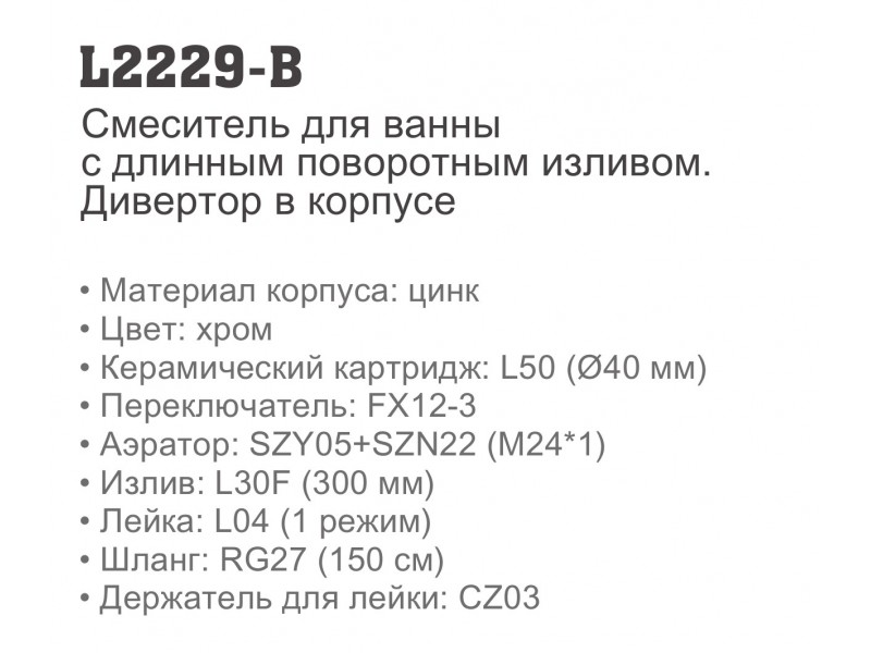 Теги: серия h29-b силумин 40мм, цинк, хром, для ванны, излив l30f, для ванный и душа, ванник