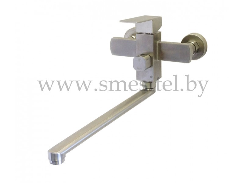 Смеситель ledeme l72233 изготовлен из нержавеющей стали sus304. Конструктивно выполнен однорычажным с перекидным изливом 35см и укомплектован лейкой с покрытием имитирующим нержавеющую сталь и шлангом ,с гайками и оплеткой из нержавейки sus304.Так же в комплекте настенное крепление лейки и комплект эксцентриков с декоративными чашками.