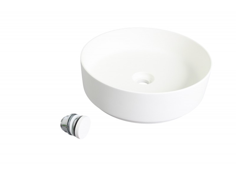 Комплектация: умывальник, донный клапан с белой накладкой из композита;