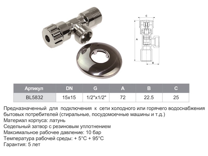Купить угловой вентильный кран из латуни хромированый для холодного и горячего водоснабжения TIM BL-5832 1/2-1/2 ш-ш и бытового применения оптом и в розницу у дилеров ооо аш два о с доставкой по Минску и Беларуси