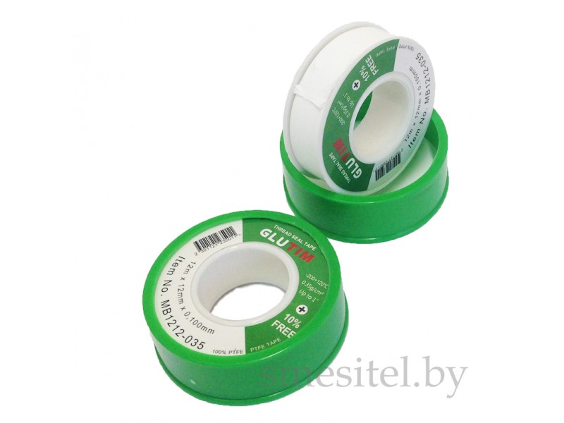 Фумлента GLUTIM шириной 12мм и толщиной 0,1мм намотка 12м и плотностью 0,35гр/см³. Фумлента GLUTIM из фторопластового уплотнительного материала является пластичным,прочным и химически стойким уплотнителем сохраняющим свои свойства в широком диапазоне температур от -200 до +120°C. Не требует специального обучения для использования,что позволяет не специалисту выполнить качественный монтаж систем водостабжения и отопления.Фумлента GLUTIM сантехнического,общепромышленного и бытового применения пригодна для герметизации трубопроводов водопроводов неагресивных к полимер тетрафторэтилену PTFE.Поверхность уплотнителя покрыта пленкой вазелинового масла.