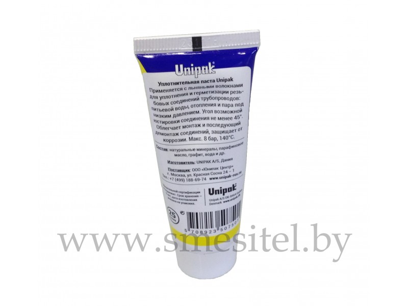Паста для уплотнения резьбовых соединений "UNIPAK", тюбик 25г.-отопление и водоснабжение-купить сантехнику оптом ООО 'Аш два О' с доставкой по Беларуси