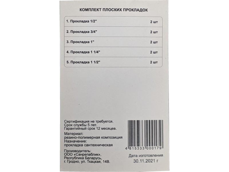 Универсальный комплект уплотнительных прокладок "№4" резина пакет РБ.. |