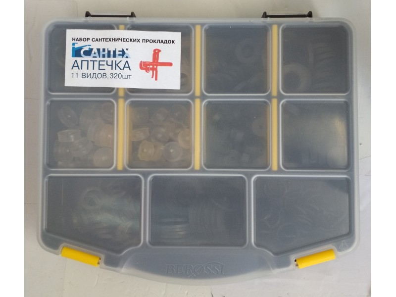 Набор прокл д/смесител "Сантехаптечка" в органайзере (320 шт/уп, 11 видов)-купить сантехнику оптом-ООО 'Аш два О' с доставкой по РБ