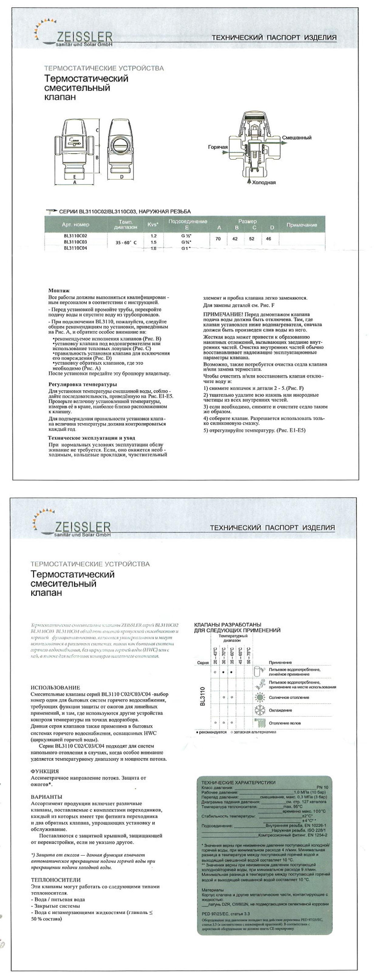 Термостатический смесительный клапан Zeissler серии BL3110C03 обладает высокой пропускной способностью и хорошей функциональностью,являются универсальными и могут использоваться в различных системах,таких как бытовая система горячего водоснабжения,без