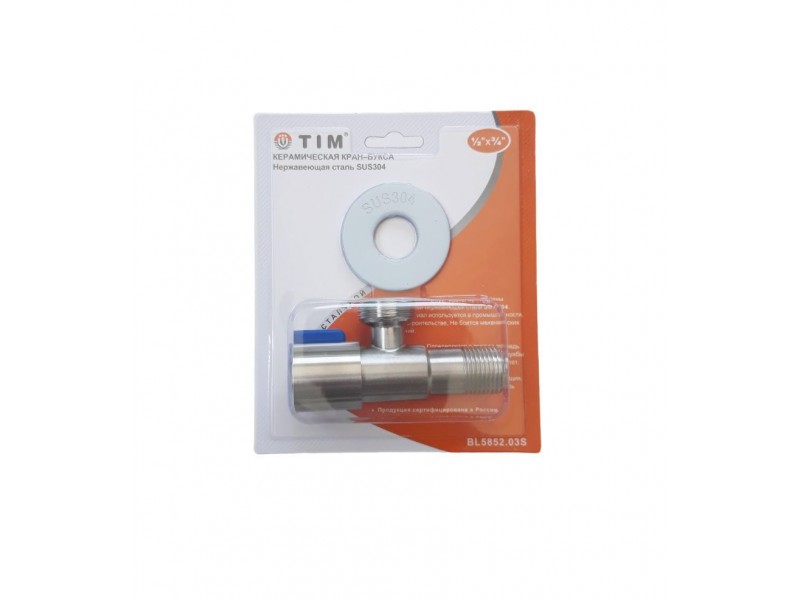 Кран угловой с отражателем из нержавеющей стали TIM BL5852.02S (1/2*1/2)