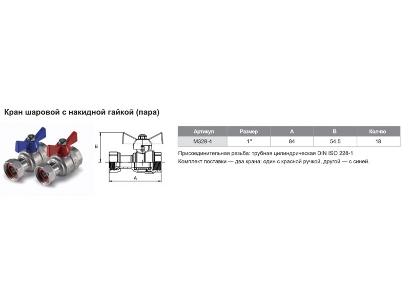 Кран шаровой с накидной гайкой пара 1" TIM M328-4