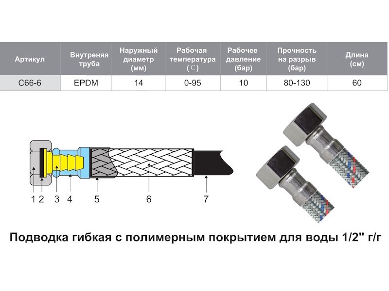 Внутренняя трубка (7) из нетоксичного термоустойчивого материала EDPM соответствующего ГОСТ 5496-78.