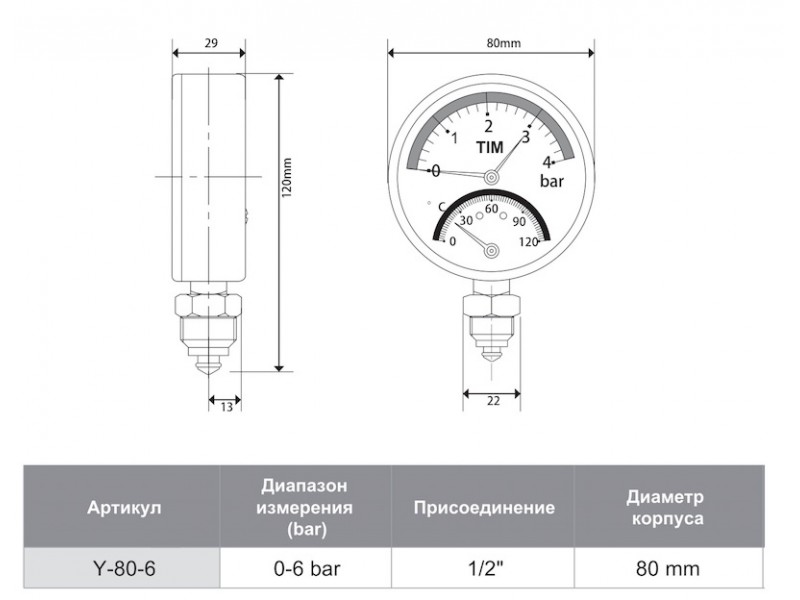 Термоманометр радиальный Y-63-6bar TIM- Измерение давления и температуры в одной точке измерения - С клапаном, для быстрой замены без простоев Применение: Для жидкой среды, не для высоковязкой и кристаллизирующейся ср.. |
