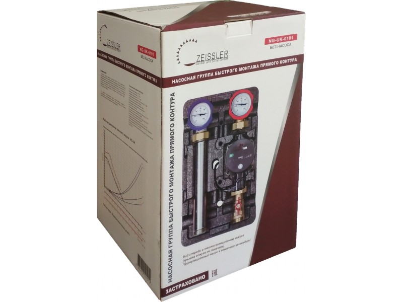 Насосная группа быстрого монтажа NG-UK-0101 (без смесительного клапана) представляет собой готовый комплект арматуры в сборе (без насоса), предназначенный для принудительной циркуляции, регулирования и поддержания заданной температуры теплоносителя в системах отопления со смесительным контуром. Чаще всего используется в качестве контура теплого пола.