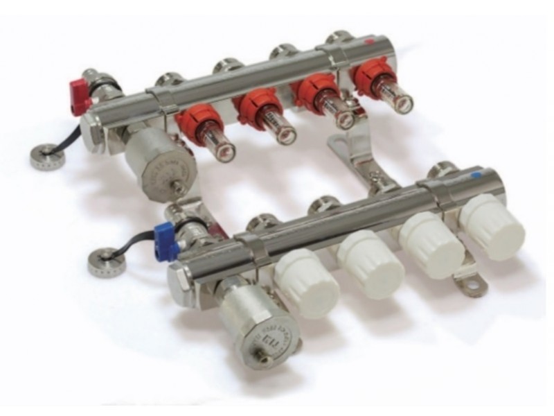 Коллекторный блок служит для распределения потоков по контурам теплого пола, где в качестве теплоносителя используется вода либо незамерзающие растворы гликоля с максимальной рабочей температурой 70 °С, рабочим давлением до 6 бар