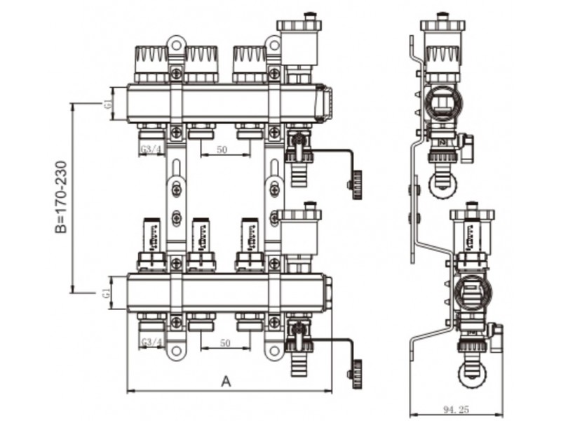 Выходы от 2 до 12 с соединением 3/4" Евроконус. Межосевое расстояние: 50мм.