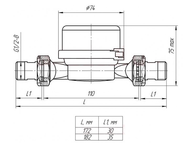 Максимально допустимое рабочее давление в системе водопровода при котором счетчик сохраняет точность и герметичность при длительной эксплуатации составляет 1,0 МПа.