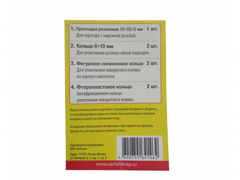 Набор "Сантехник №14" (прокл д/ремонта смесителей с картриджем 35мм ) в пакете
