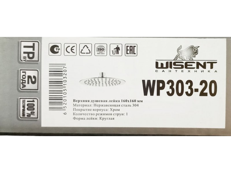 Лейка тропический душ (D20, круглая,хром ) WISENT WP303-20
