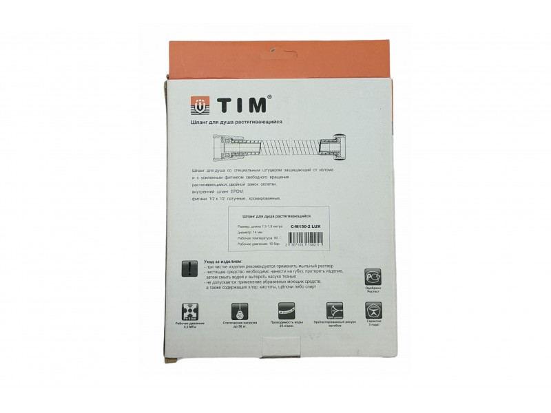 Шланг для подключения лейки т.м. TIM выполнены из высококачественной резины и латунной хромированной гофры, которая одновременно имеет высокую прочность и гибкость.